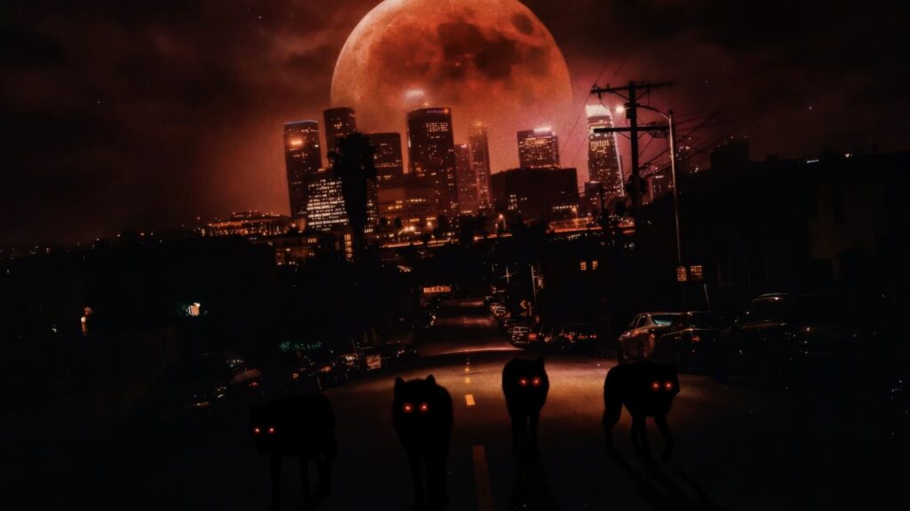 - 構造の破綻:背景として映し出される高層ビル群において、窓の配置やパターンがフラクタル的に破綻しています。これは人間が手作業で作画した場合にはまず発生しない種類のエラーであり、AI生成特有の不規則性と考えられます。