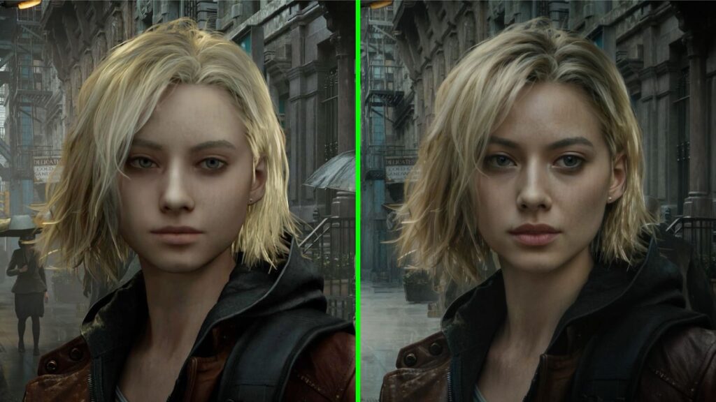 この技術は、ゲーム内の色情報や物体の動きを示すデータを読み取り、AIモデルが各フレームに対して現実世界のような自然な光の反射や質感をリアルタイムで付加します。驚くべきは、元の3Dモデルの基本骨格(ジオメトリ)には一切手を加えず、AIがその上に映画の特殊効果(VFX)に匹敵する極めて写実的な映像を重ね合わせる点です。これにより、人間の皮膚内部での光の散乱や、衣服の微細な光沢、髪の毛への光の干渉などが瞬時に表現可能となり、従来のハードウェア処理能力の限界を鮮やかに突破しています。